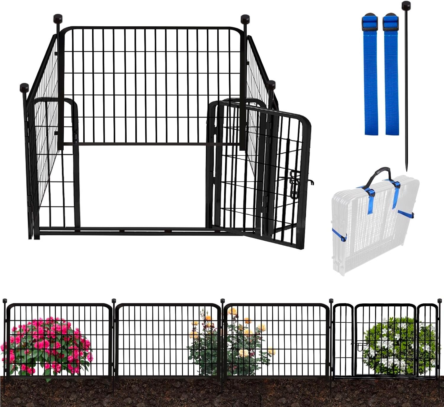 - wide Range of Applications: The Product Comes with a Set of Easy Carry Straps for Camping and Storage.This Decorative Garden Fence is Suitable for Patio, Lawn and Vegetable Garden Borders, and Can also be Used for RV Camping