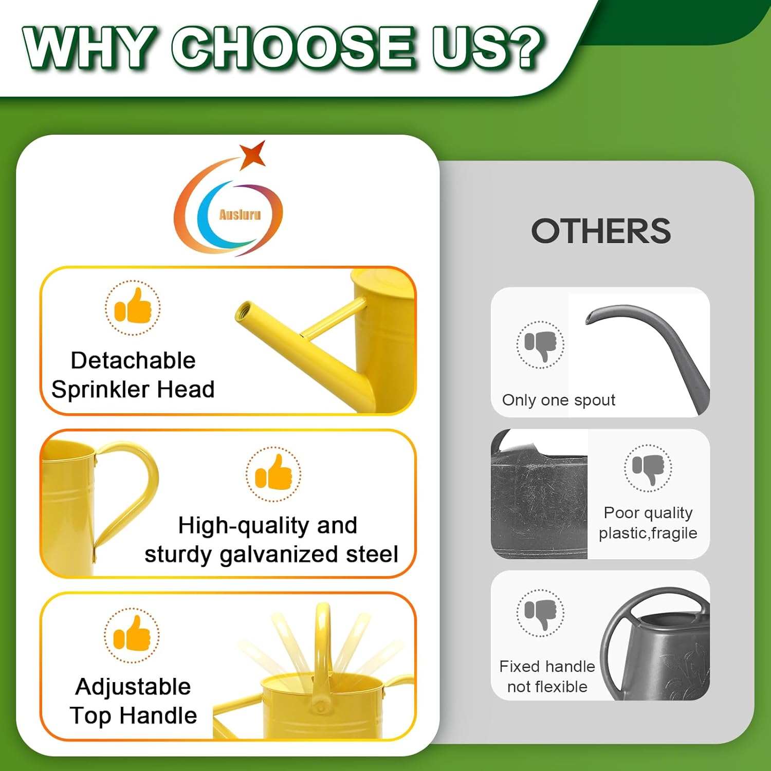 - High-Quality Material: Crafted from durable, corrosion-resistant metal, this watering can boasts a sleek and elegant design that brings a touch of sophistication to your gardening routine.