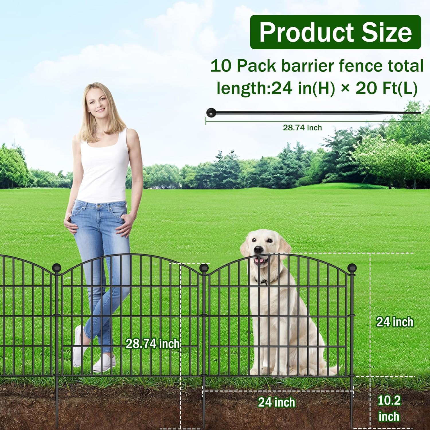10 Panels No Dig Decorative Garden Fence with Gate - 24 in (H) x 20 ft (L) Dog Rabbits and Pets Fence Outdoor for Yard, Animal Barrier Tall Rustproof Metal Wire Fencing Border for Garden and Patio