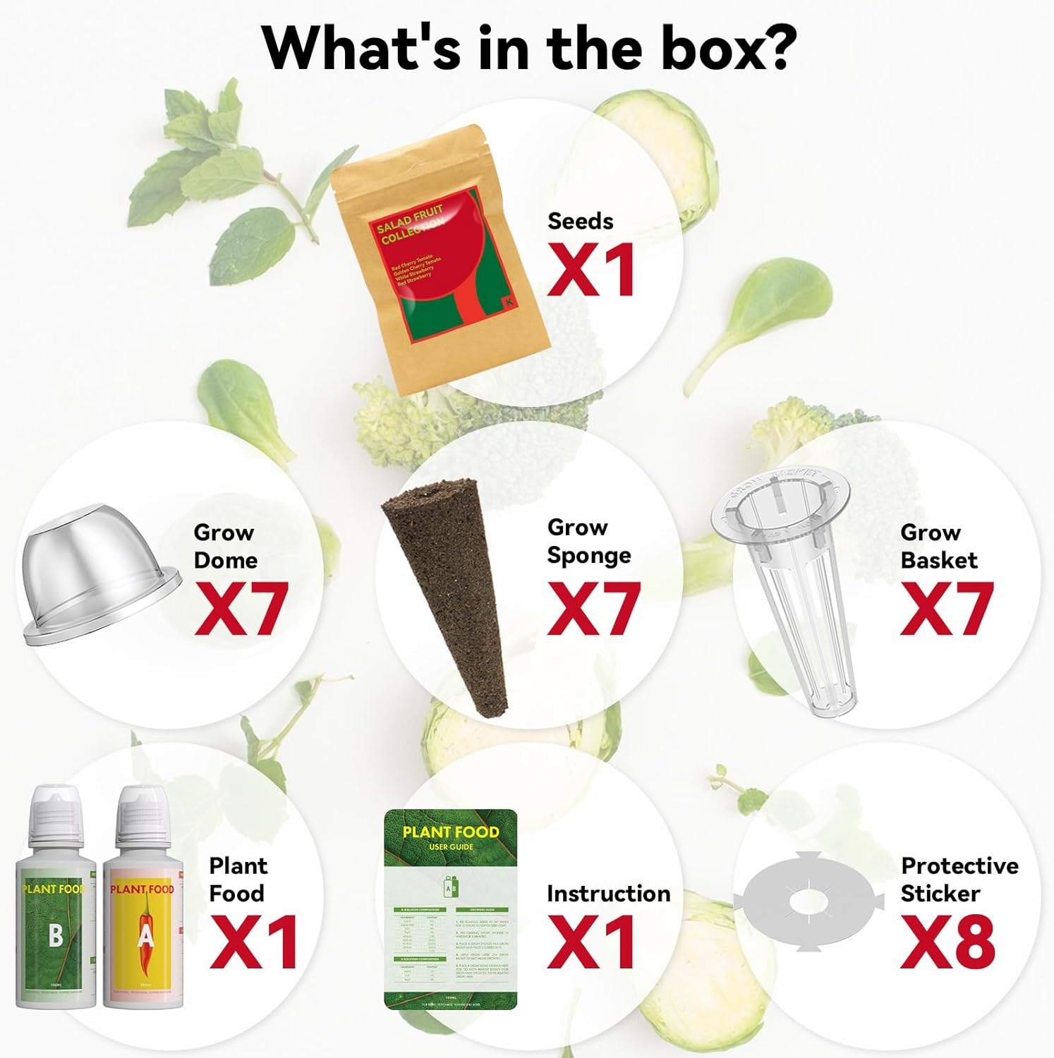 - Everything Your Need: inbloom hydroponic fruit seed kit not only includs red cherry tomato, golden cherry tomato, red strawberry, and white strawberry, but includes 7 grow baskets, 7 sponges, 7 domes, 8 protective stickers, and A&B plant food. Our fruit seed kits makes for a colorful garden with diverse flavors