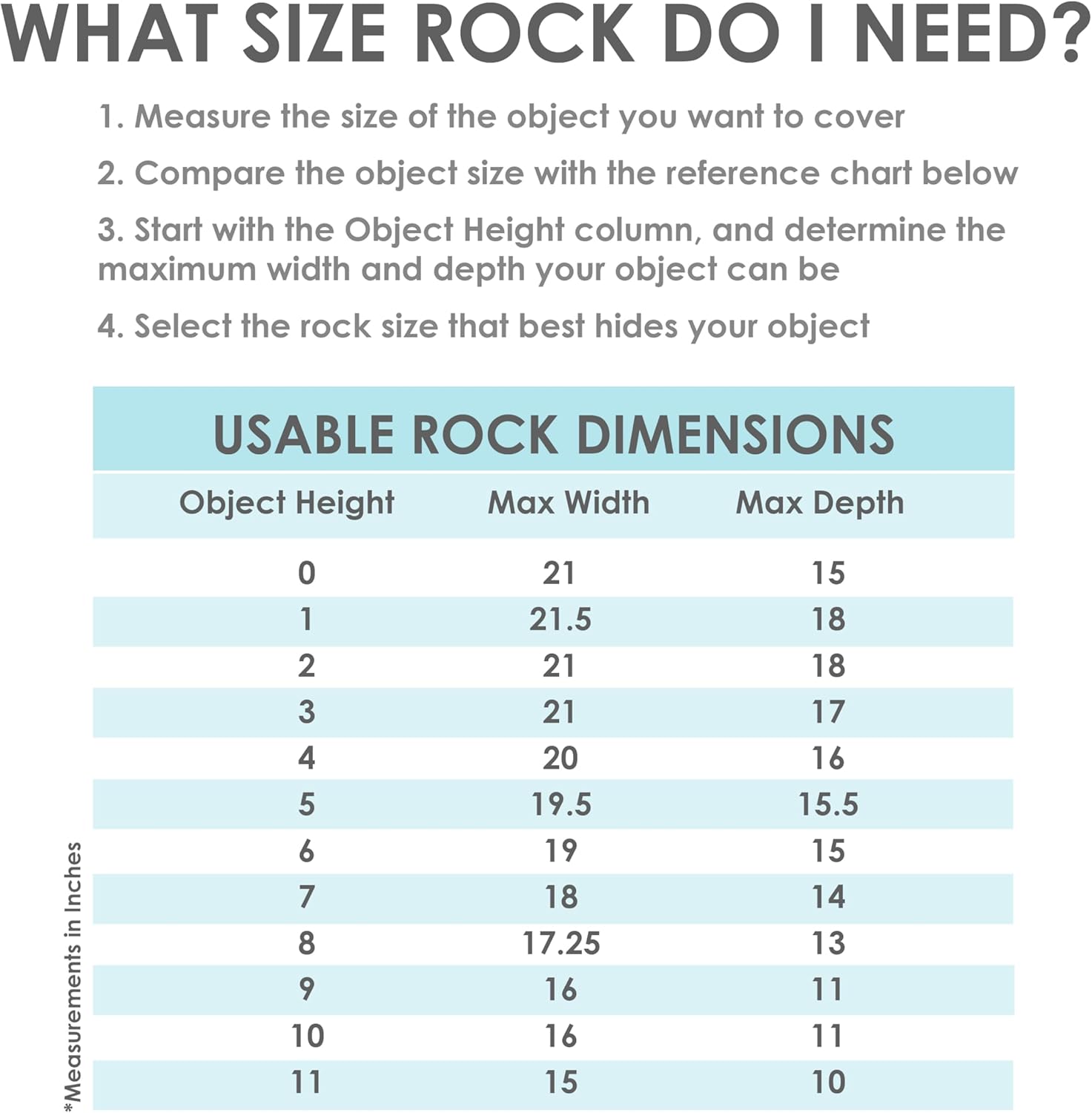 - COVERS WELLS, SEPTIC TANKS, AND MORE: Use this artificial landscape rock to cover unsightly objects in the yard or hide a spare key discreetly. The artificial boulder measures 22.75" W x 19.5" D x 14" H and weighs 2.6 lbs. The stakes included with the rock measure 1" W x 12" H each.