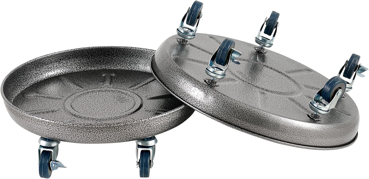 - [Metal tray] The surface of the rolling plant caddy is frosted to increase friction with the bottom of the planter, ensuring that the planter will not topple over during movement. The internal height of the saucer tray is 1inch deep enough, so it can practically catch and hold the overflow