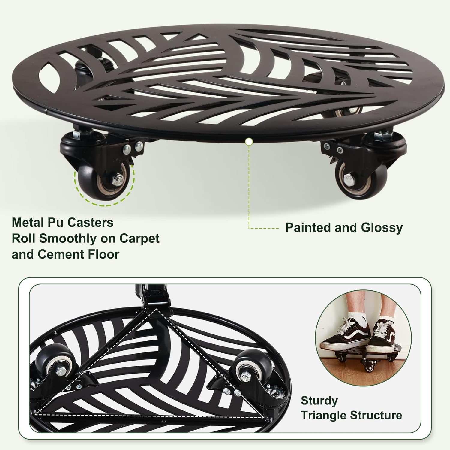 - Unique Design: The package will come to you with 3 packs of 13” large metal plant caddy, which is special designed like leaf pattern. It holds the heavy plant pots while add an addition to your home decor.