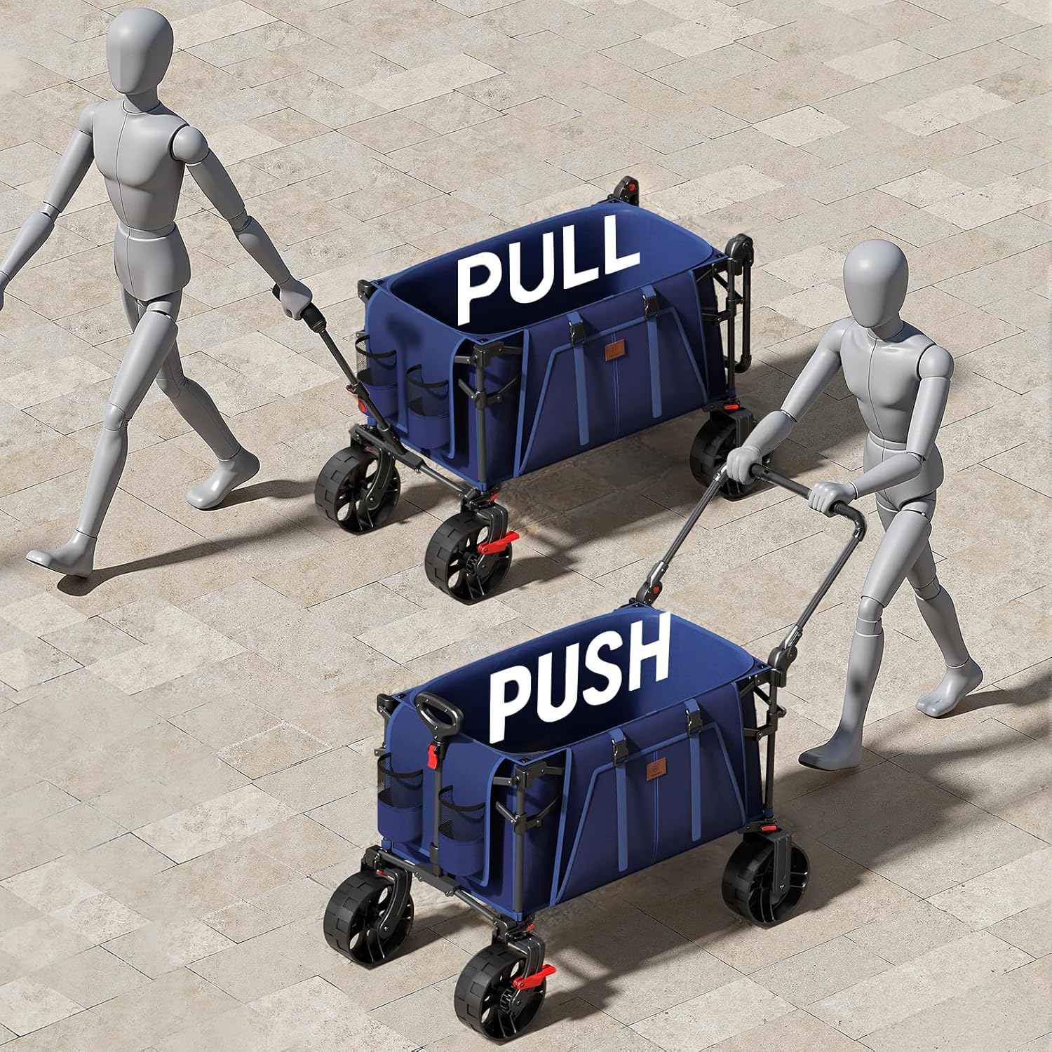 - ADJUSTABLE PUSH AND PULL HANDLES: Equipped with a push handle compared to normal wagon carts, which makes pushing and pulling more convenient. All handles are designed to be adjustable multi-angle to meet your needs of different heights