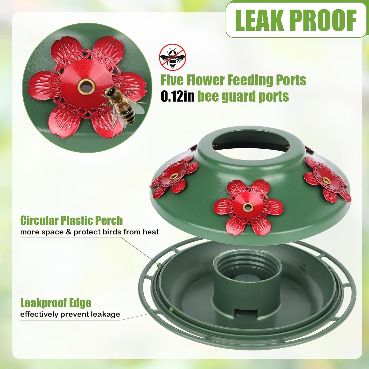 - Leak-Proof Construction: Premium metal cap and plastic base with leak-proof edge, no worries about messy spills or wasted nectar