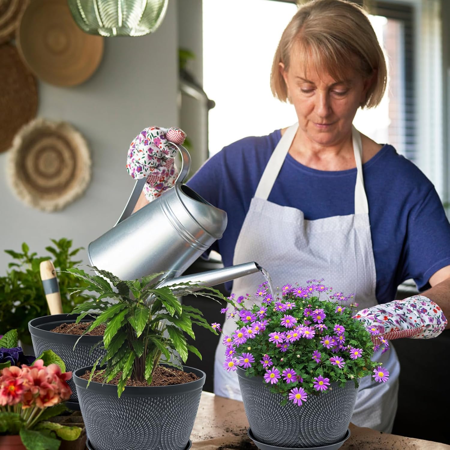 - 【Modern Circle Pattern】The flower pot is designed with a 3D imitation ceramic plastic textured round rope pattern add a lively and modern feeling, brings out a modern stylish visual representation for any home/office decor without any sense of violation. Enhance your space with these planters and watch your plants flourish.