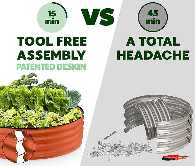 - EFFORTLESS ASSEMBLY, LIKE NO OTHER! Begin your planting journey by choosing our innovative patent-pending design, featuring the perfect combination of easy assembly and durability. Thanks to our unique tool-free design, assembly is a breeze and can be completed in just 15 minutes! Get started on your garden right away and enjoy fresh, healthy produce in no time.