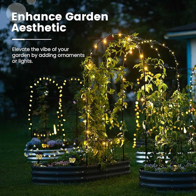 - 【Multifunctional Trellis】More than just a simple raised planter box, the trellis adds a realm of possibilities to your garden. You can hang small flower pots, decorations, and ambient lights on the trellis, or drape it with mesh or covers. As lush plants climb over the trellis, they also provide refreshing shade for your garden.
