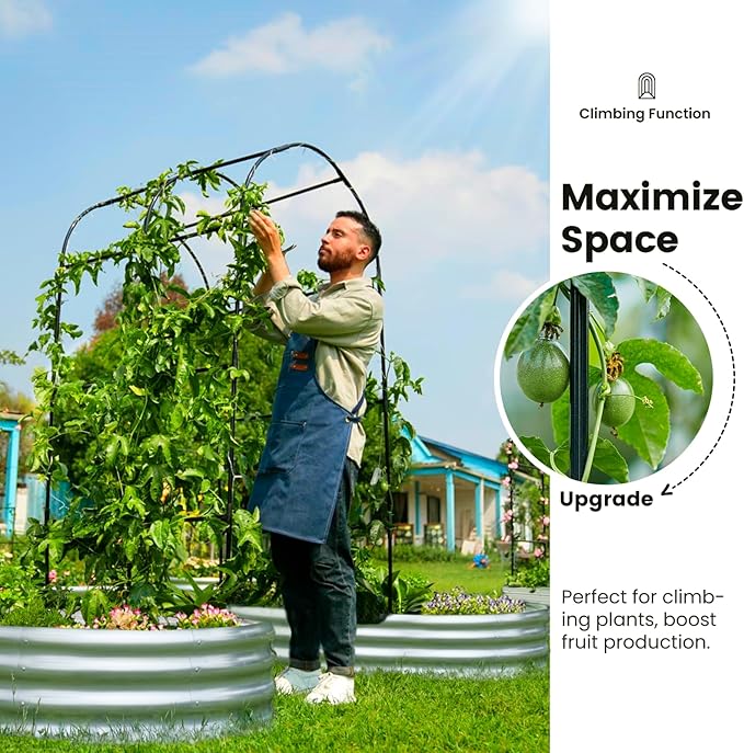 - 【Expanding Planting Space】Raised garden beds equipped with trellises are perfect for climbing plants, vines, and tall crops like cucumbers, tomatoes, and beans. Even in limited spaces, they support plants to reach their ideal heights. This helps you effectively utilize vertical space, allowing vines to thrive and boosting yields.
