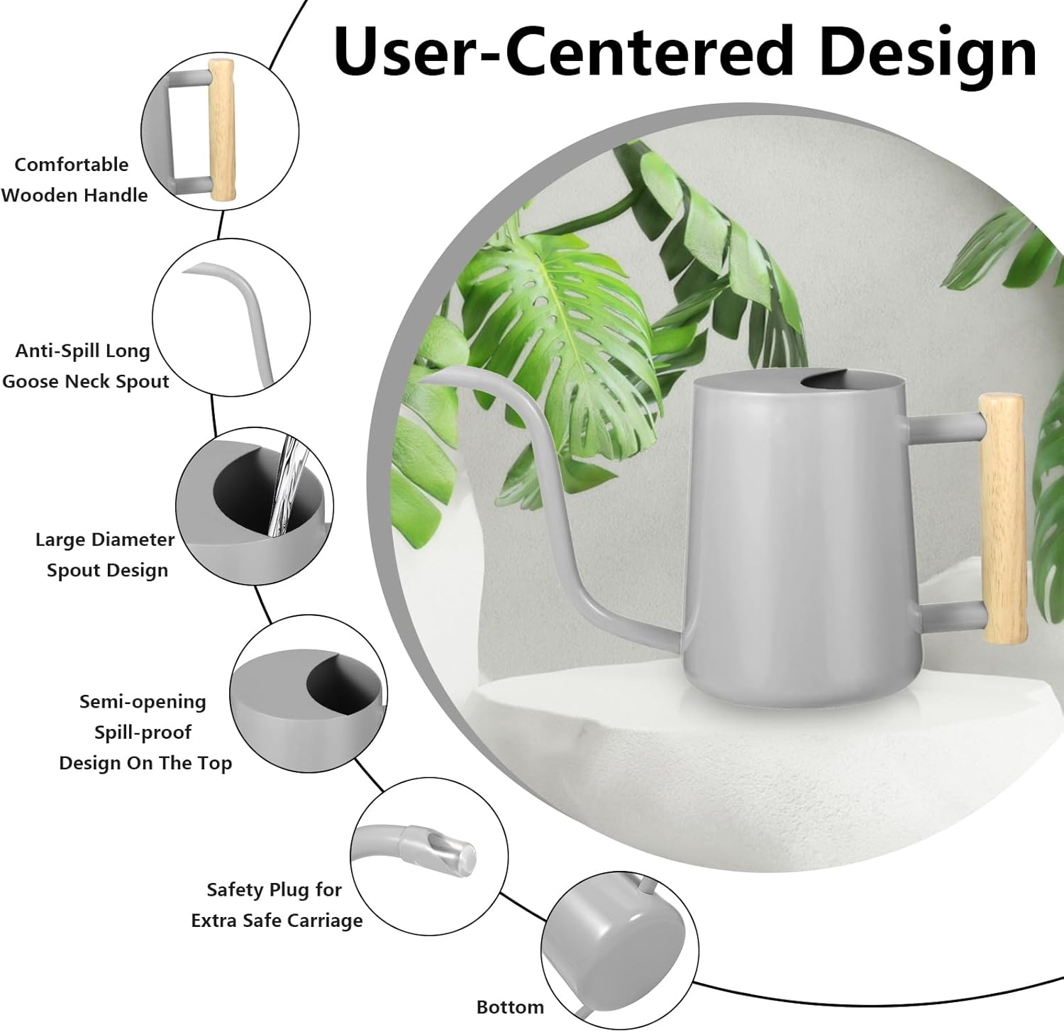 - Decorative & Functional - Our watering can is not limited to just indoor plants, it can be used for outdoor gardening. Small watering can has a variety of color choices. Just perfect for watering small house plants, hanging plants, tabletop bonsai, potted plants, small cactus. The modern, simple design fits any decor and looks great on display. With a exquisite and light watering can body and real wooden handle, this watering pot serves as a decoration as well
