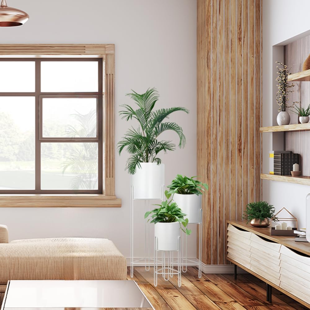 - MORDEN DESIGN:Add a touch of sophistication to your room with this set of three metal planters that come with sturdy metal stands. The planters feature a sleek and modern design style that creates an elegant ambiance,and it will be an eye-catching decoration in your room.