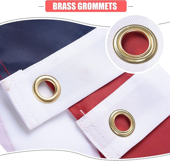 - Strong, Durable: The USA flags 30x50 outdoor, four point needle fly hem (4 rows of stitching), brass grommets. Fly your big united states flags proudly in the rain, snow, high winds, and sunshine! The perfect all-weather, outdoor American Flag banners.