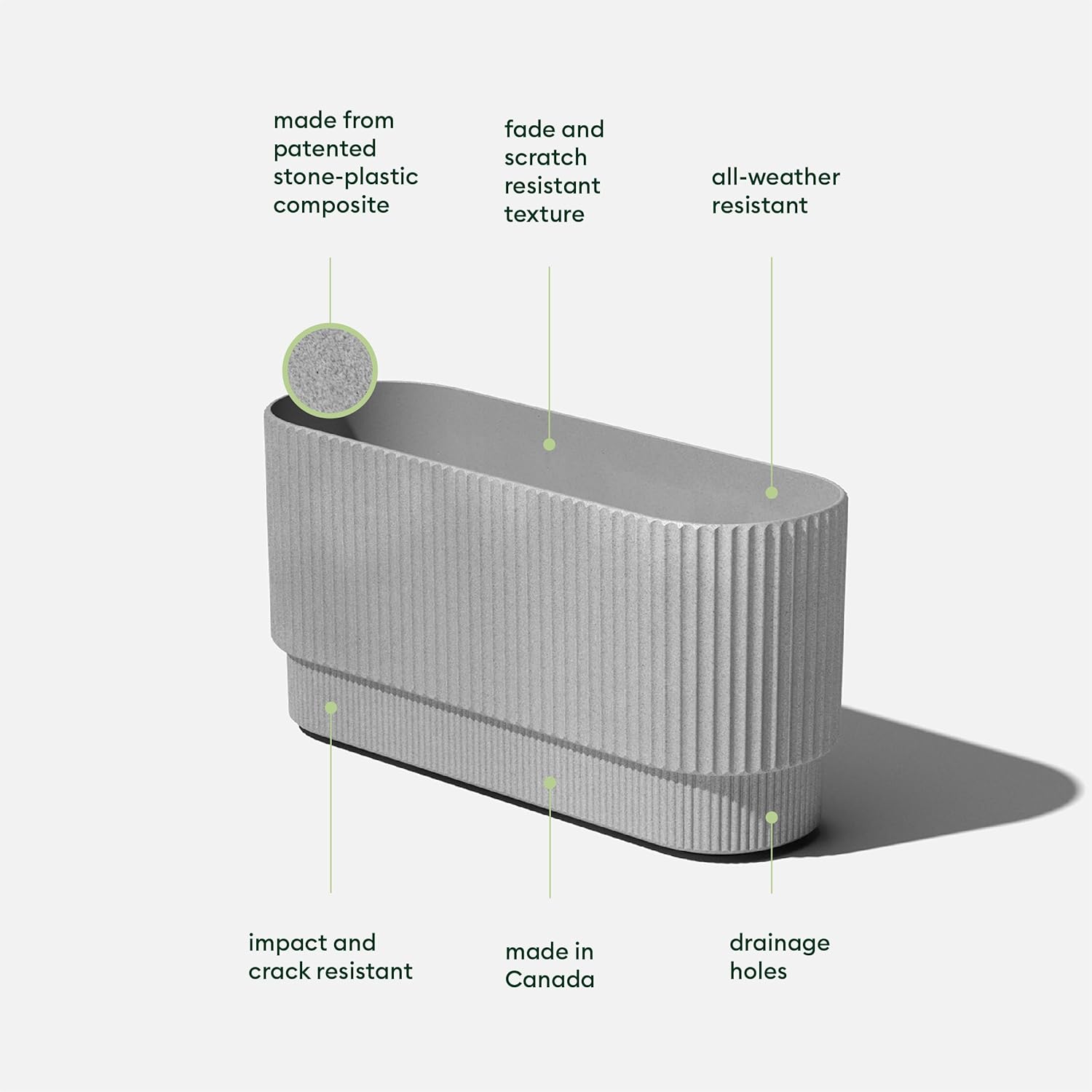 - DURABLE MATERIAL: Made from a patented plastic-stone composite, this fluted planter has a subtle textured finish and is all-weather resistant to cracks, scratches, UV and fading; perfect for hot or cold climates ranging from -20 to +120 degrees