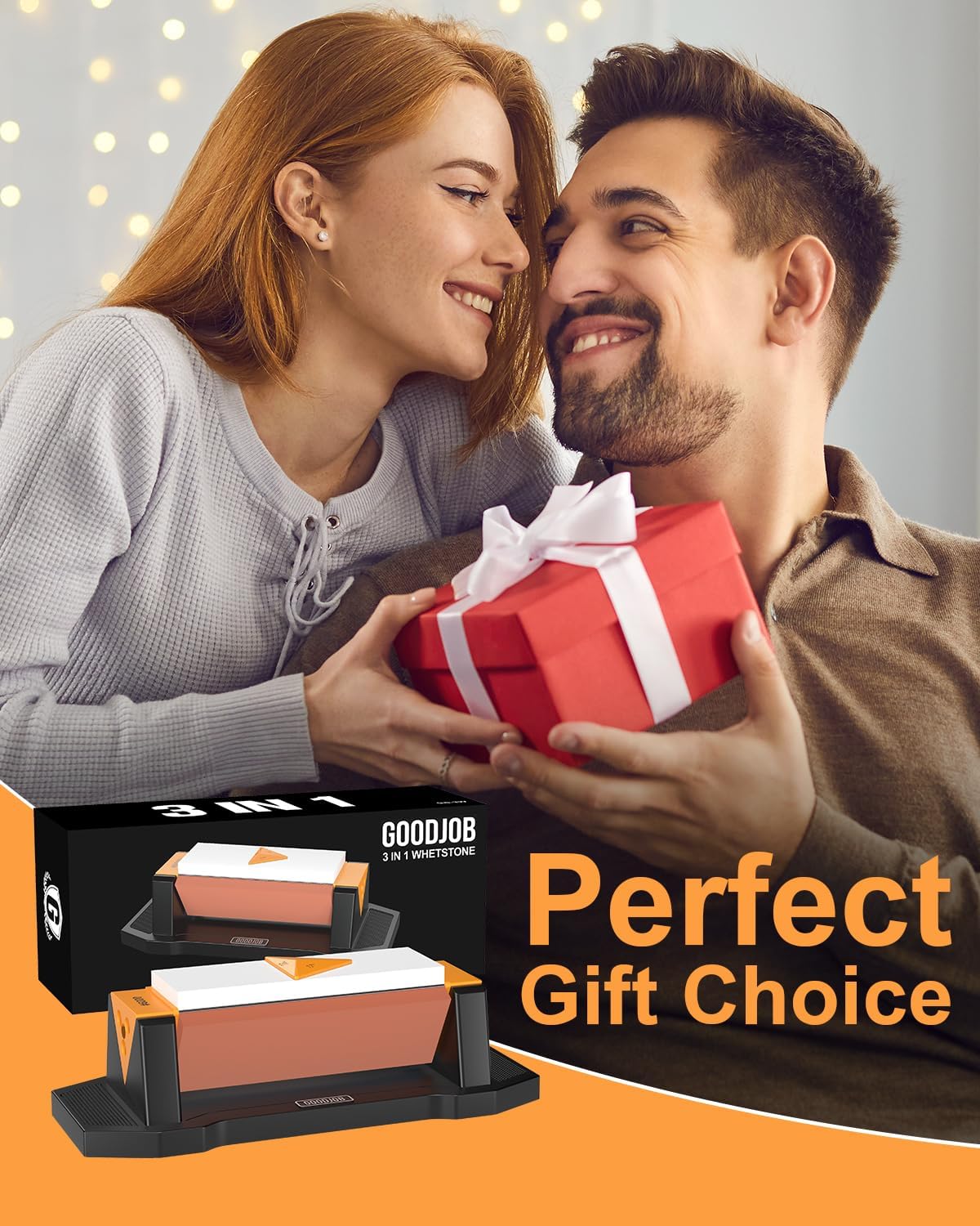 Knife Sharpening Stone Kit Premium 3 Side Grit 1000/3000/6000 Whetstone Knife Sharpener Tool for Kitchen Knife Set with Angle Guide and Non-Slip Base (GB-3W)
