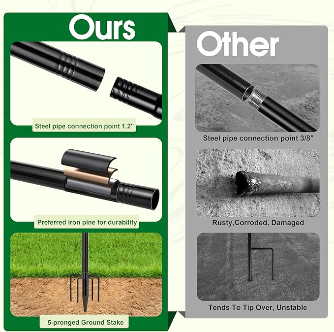 - 【Best Garden Flag Pole】Great garden flag stands, which could effectively fixed your beloved flag not to blow off in the wind and rain weather and display your favorite flag at your front door or backyard garden, simply place into the ground and attach your favorite garden sized flag.