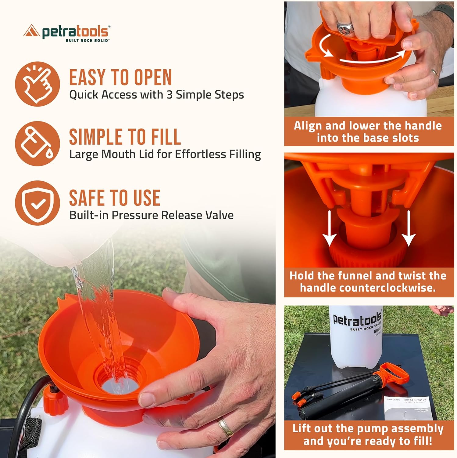 Petratools 2 Gallon Pump Sprayer - HD201 Garden Sprayer for Weeds, Lawn Care & Pesticides - 52" Long Hose, 2 Nozzles & Easy Carry Handle - Durable & Lightweight