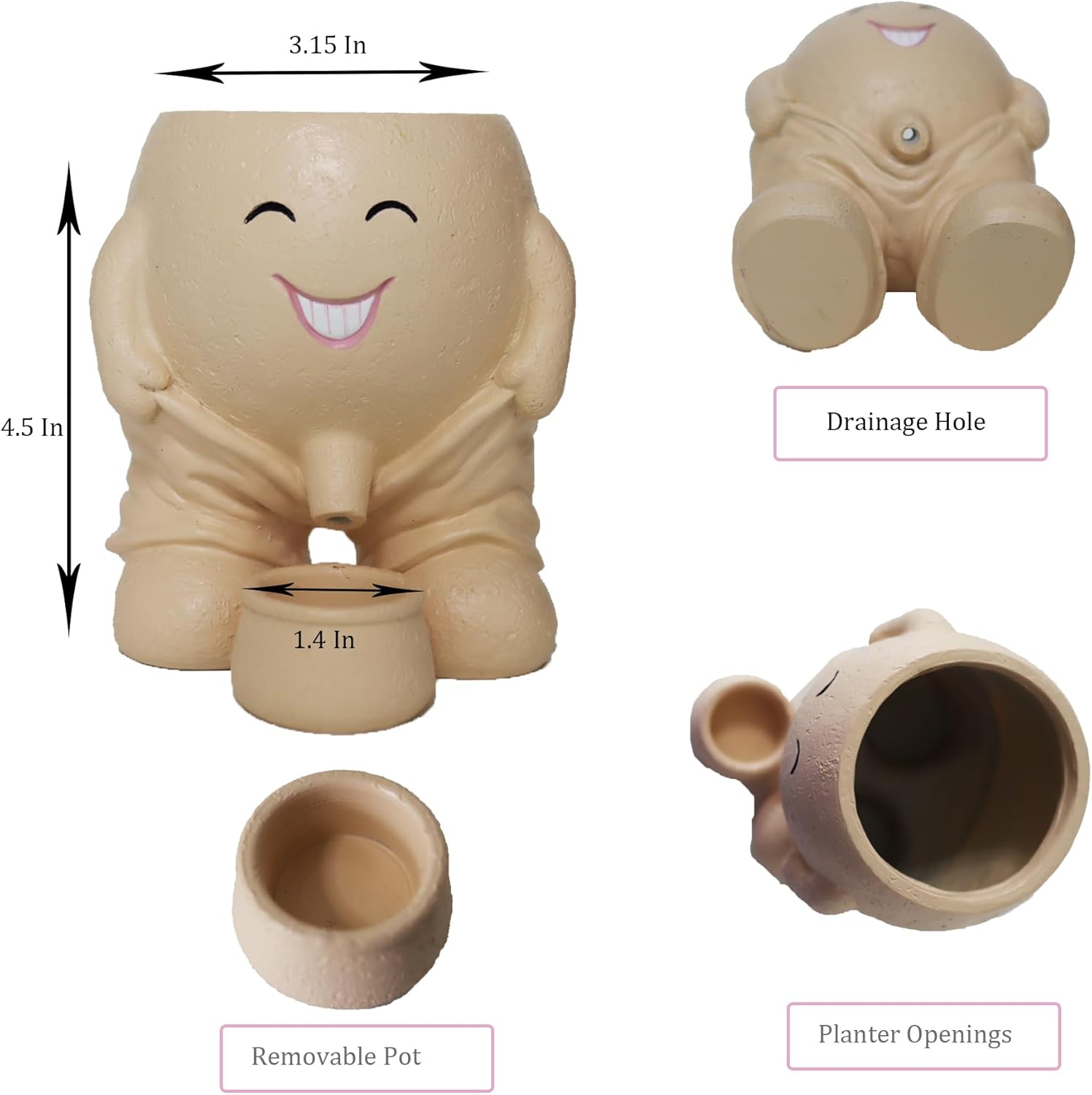 - 🌼 Premium Material: Our face flower pot head planter is made of high-quality resin. The premium material makes our flower planter can stand any weather condition and can last for years even place outdoor.