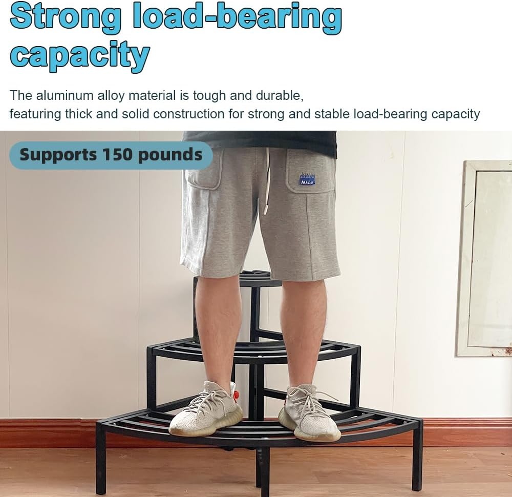 - 🌿【Durable & Stable】Made of aluminum, this stand can bear up to 70 pounds per tier. The triangular support and tight connections add to its stability and ensure it remains steady during use.