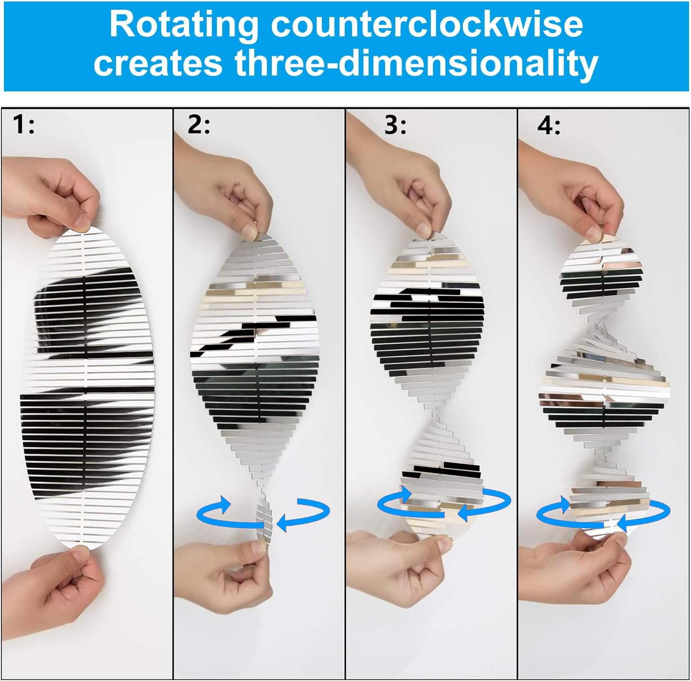 - 3D Shape, Easy Installation: These Wind Spinners are equipped with an S hook and a crystal pendant. You just need to gently rotate the Wind Spinner to your preferred angle and they can present a perfect 3D effect anywhere. They are extremely beautiful when shined under sunlight or rotating in a breeze. These are 3 strings with 4 wind spinners of very reflective can rotate easily in the breeze, Reflects bright light to scare away birds.