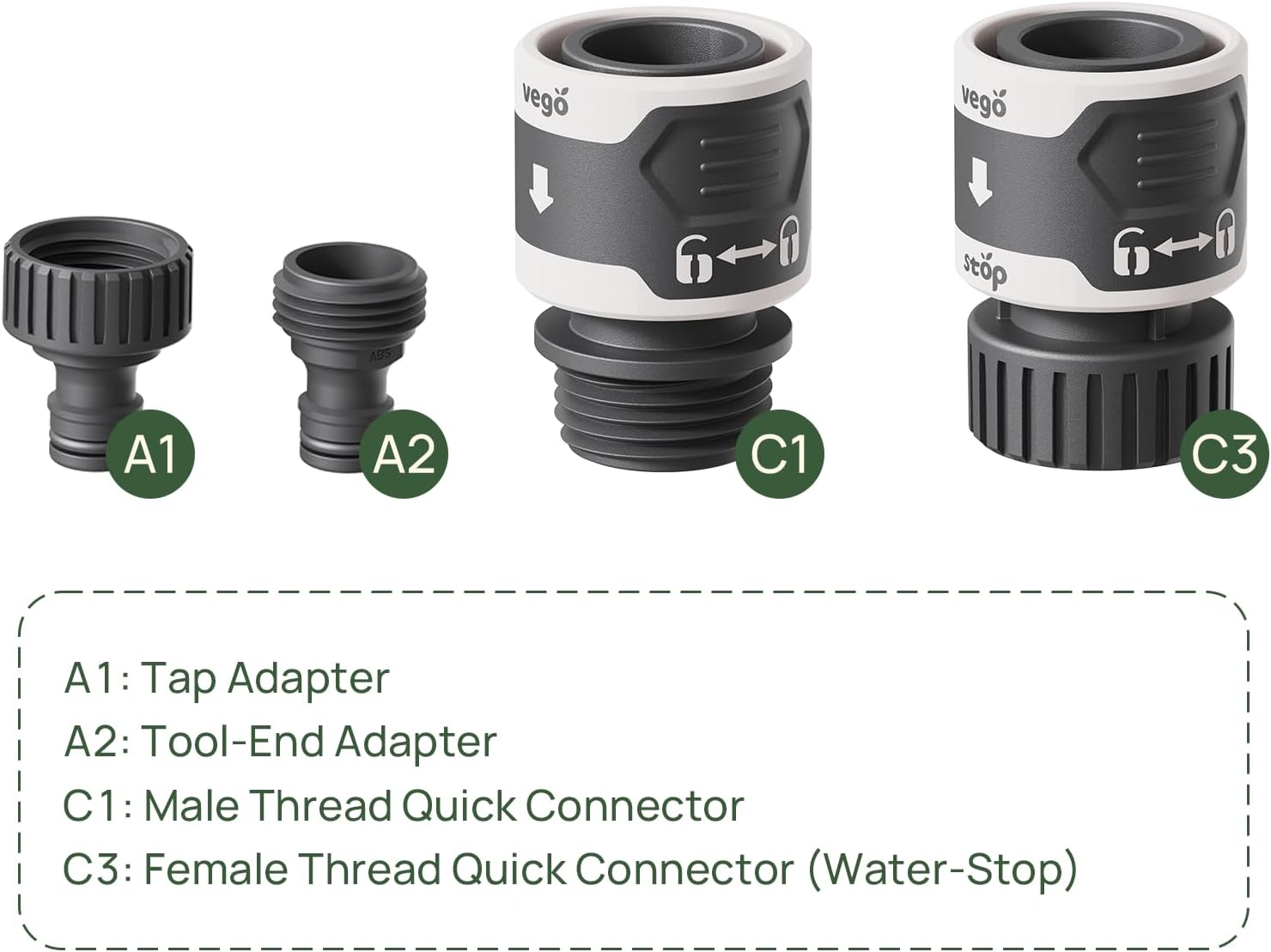 - Reliable Leak Prevention: Featuring a twist-and-lock mechanism, the Quick Connectors ensure a secure connection, preventing accidental disconnections and water leakage.