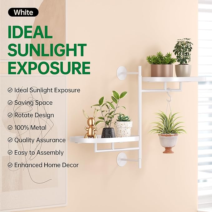 - 【Unique Window Rotating Plant Stand】:Compared to other rotating plant stands, we offer a worry-free 180°rotation, an all-metal construction, and a partially integrated design, with the main components being 1x two-tier metal rod and 2x oval mounting pieces. This minimizes the hassle of complex installation for the window plant shelf.