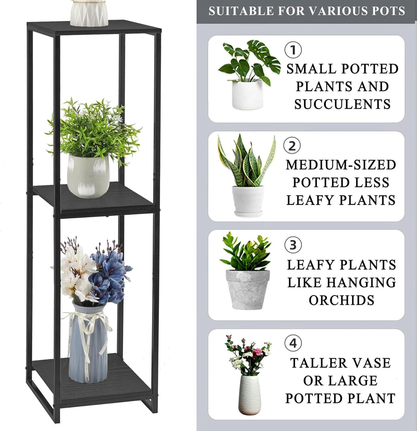 - 【Sturdy Structure】:This tall plant stand consists of heavy-duty rustproof metal tube, thickened top and bottom MDF, and 4 anti-floor scratching mats. The metal frame makes it more stable and maintenance-free; The flat shelf not only makes the flower rack more beautiful and consistent with the home decoration but also makes your plants or other decorations more stable
