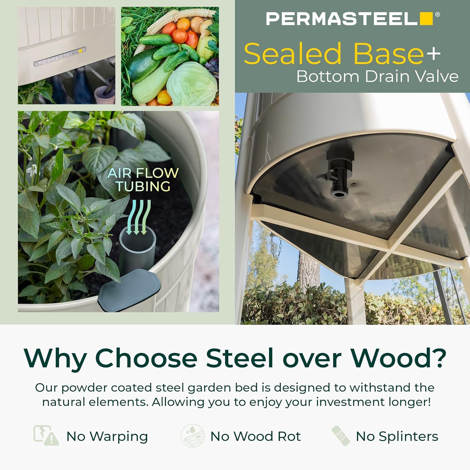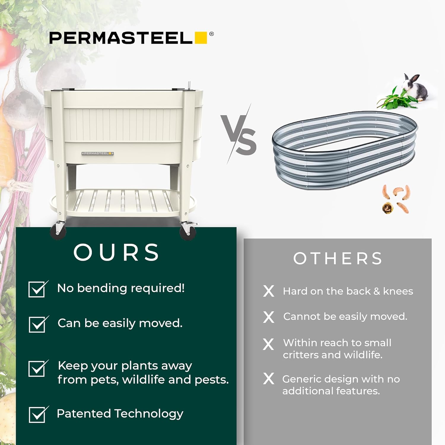 Permasteel Raised Garden Bed with Legs, 40×20×37 in, Planter Box with EnGrow™ TrueSoil™ Technology for Vegetables, Flowers, Herbs, and Fruit, Outdoor Indoor, Storage Shelf, Ivory
