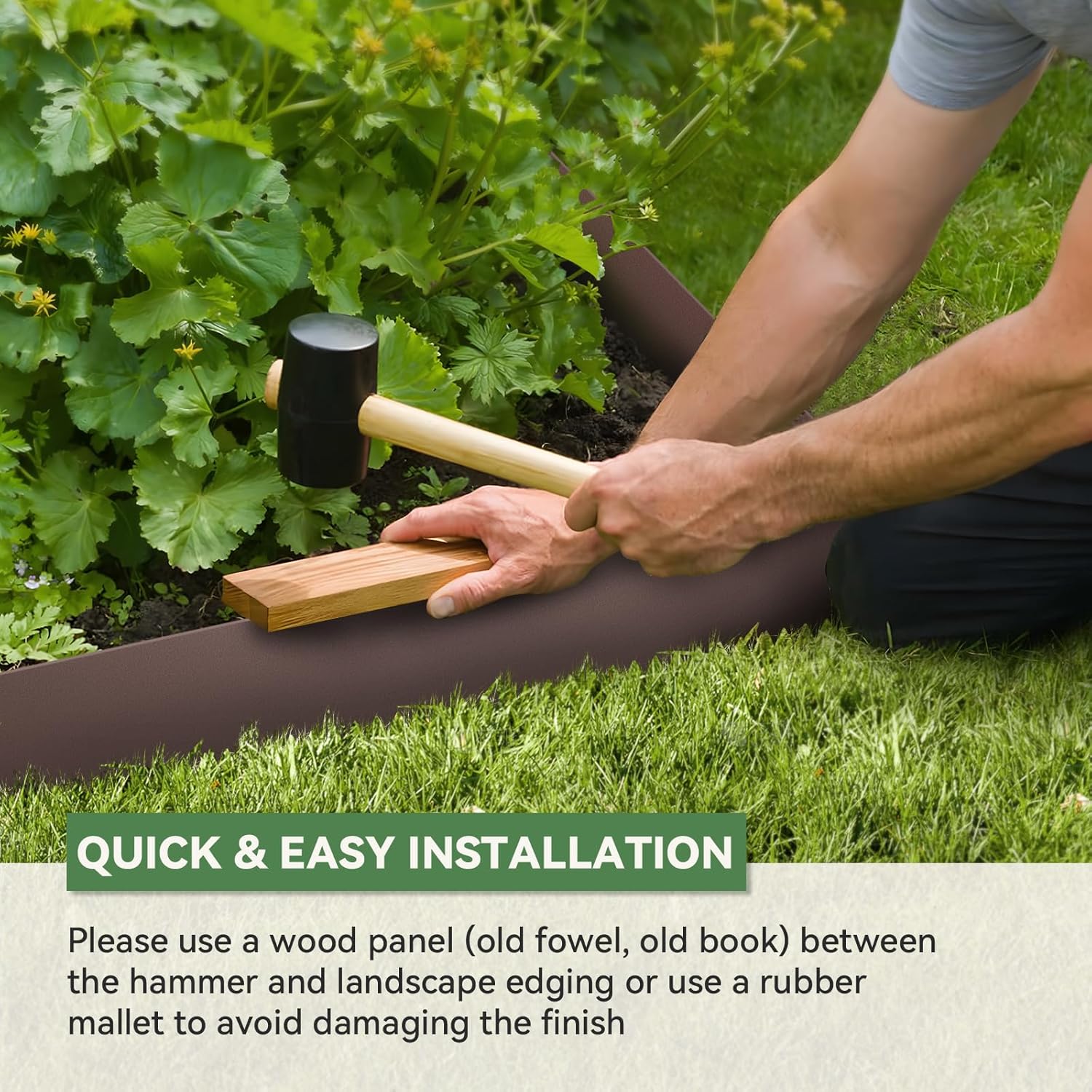 - Easy to Install: Garden edging border metal has a clamp and multiple serrations, which makes garden edging metal very convenient and labour saving when installing, no-dig, hammer-in installation (Note: Please wear gloves when installing), directly using a rubber mallet to hammer (please use a wooden board between the mallet and the end) to avoid damaging the metal landscape edging border