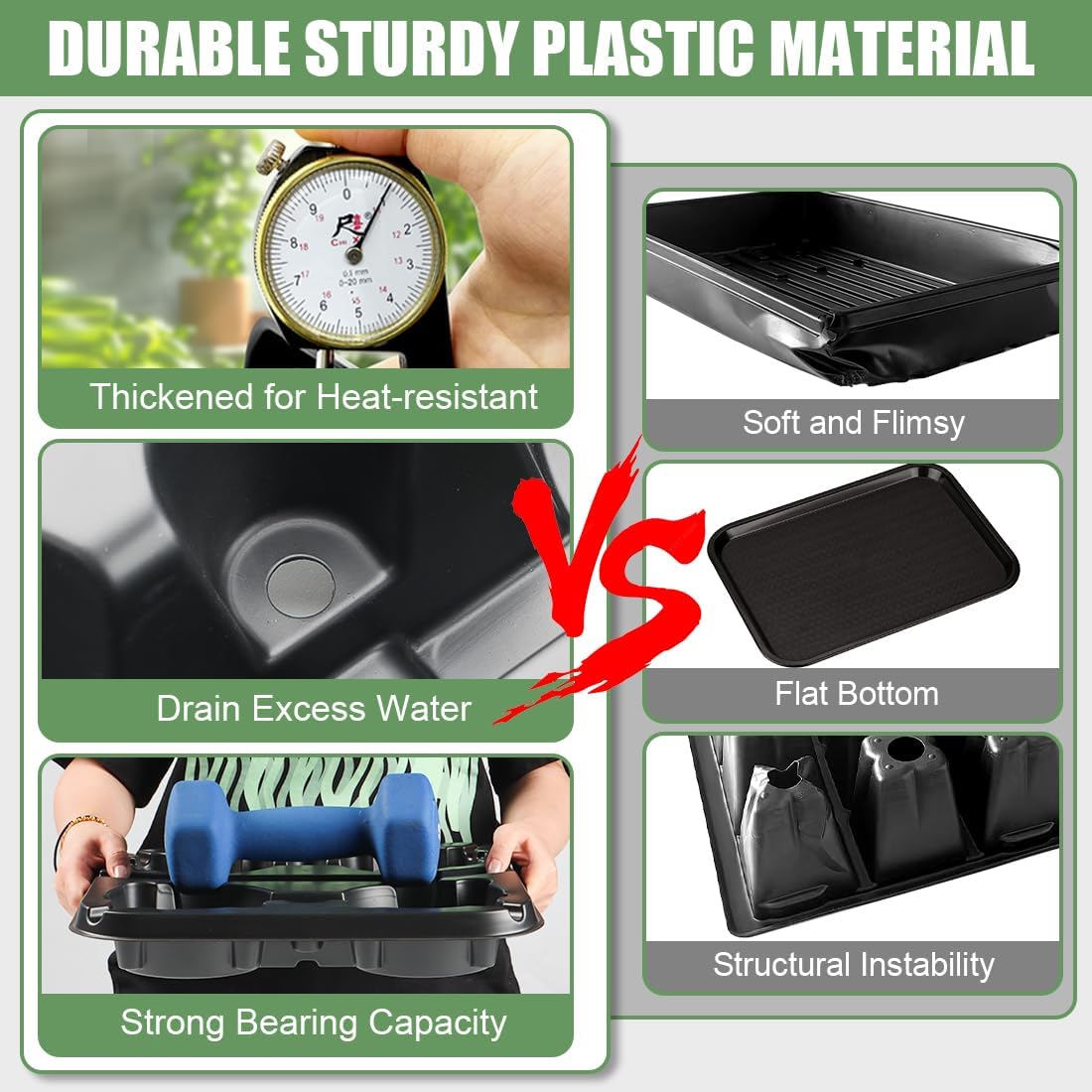 - Good Drainage System: Strategically placed drainage holes and channels at the bottom of these seedling pot tray can effectively remove excess water, Meanwhile ensures that the plants get the right amount of water, keeping the roots dry and well ventilated. Preventing plant root rot. Irrigation channels at each corner about 1/2 inch up so you don't drown the plants. Whether novice or experienced gardeners, you can easily master the use of nursery pot tray skills to provide the best growing environment for plants.