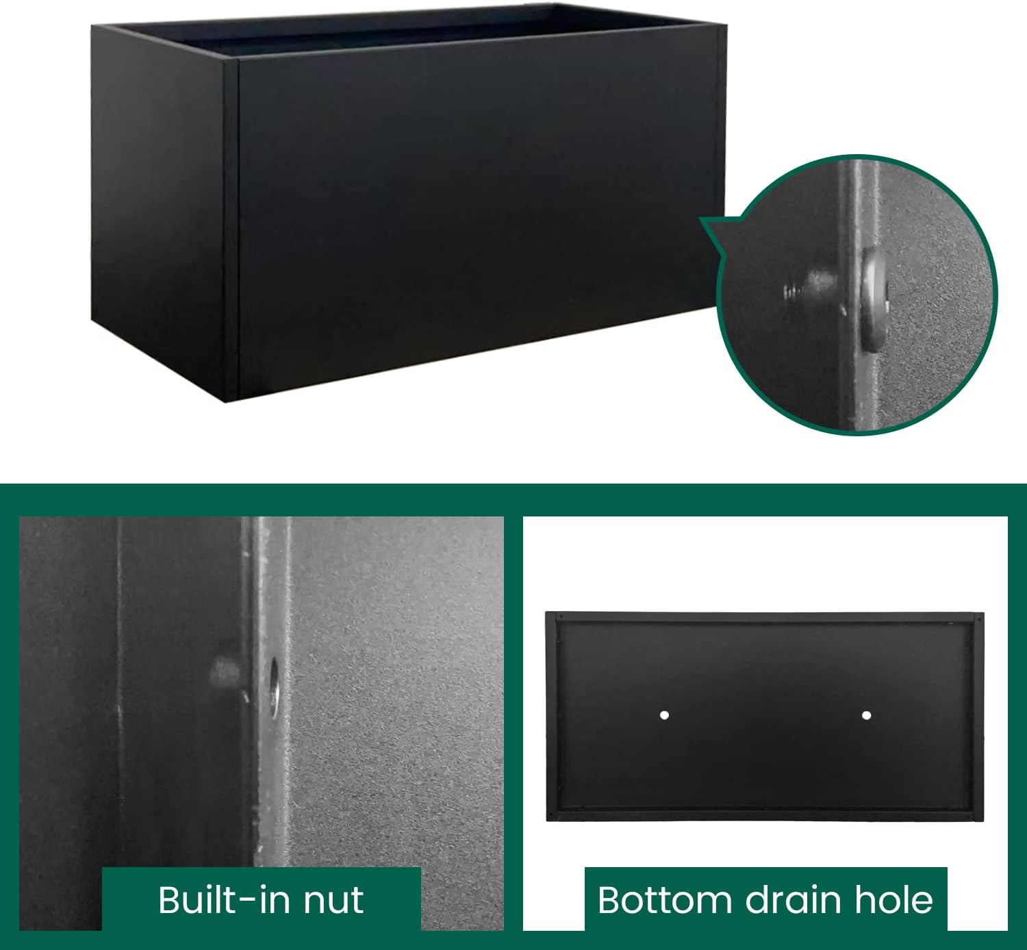 - [ Black Rectangular Planter] Galvanized planter box is made of galvanized steel with black powder coating. Galvanized Steel Planter is wear-resistant, corrosion-resistant and long lifetime.