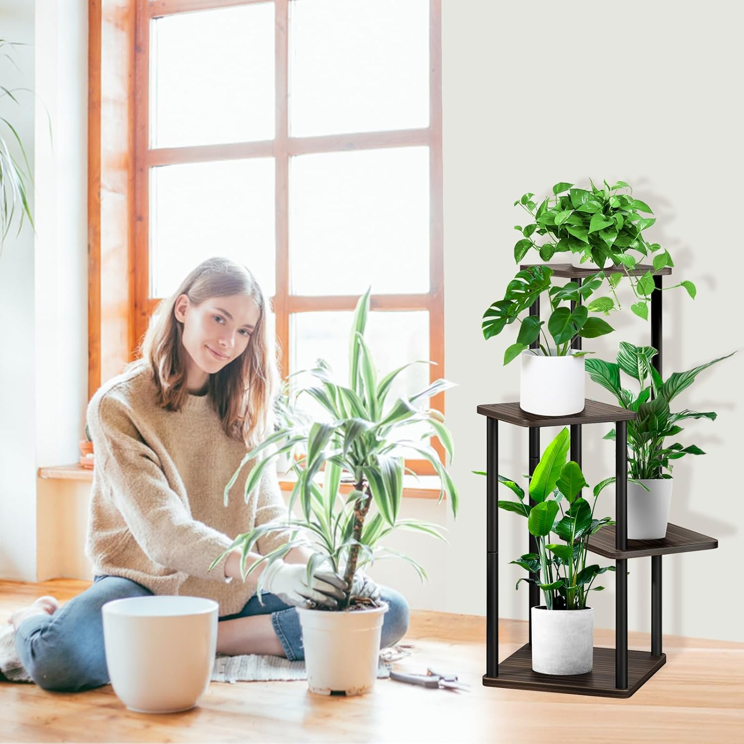 - Multi-storey Design for Large Capacity: 4 layers Metal Garden Tiered Plant Stand, accommodate 4 and more flower pots at the same time. tiered storage, giving plant flowers plenty of light.