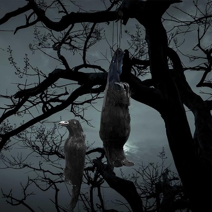 - Package Contents: our fake dead crow set includes 4 pieces of fake black crows, which look like the real thing and set off a scary atmosphere; If you are looking for the right Halloween decoration, it will be worth your choice; They help you create a creepy atmosphere for your home this Halloween season