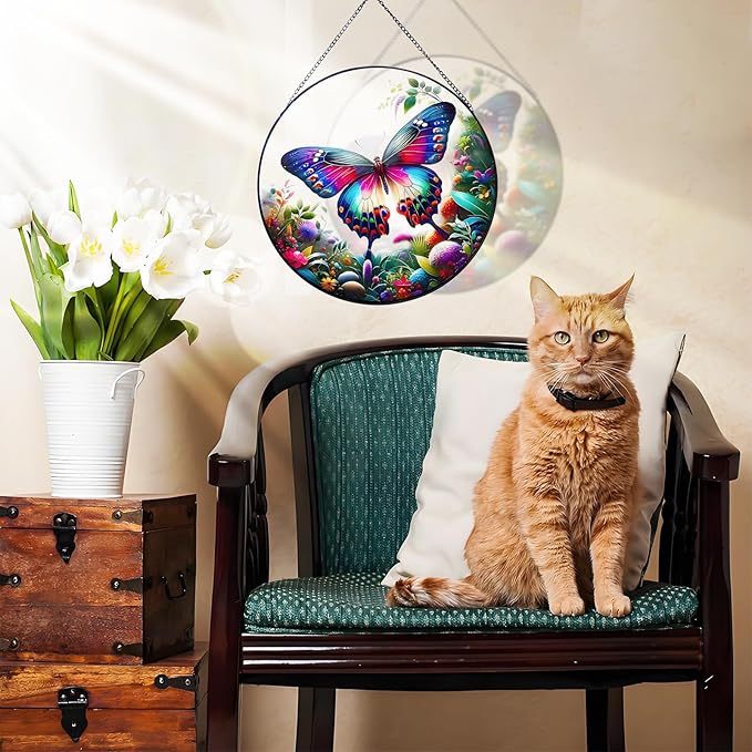 - Perfect Gift Idea: Butterfly Stained Glass Window Hanging: The butterfly suncatcher makes a lovely gift for friends, family, and lovers alike. Whether it's for sliding glass doors, kitchen windows, upstairs windows, circle-head windows, front windows, bedroom windows, or kitchen doors, it adds charm to any space.It's perfect for decorating homes, offices, shops, restaurants, window displays, coffee shops, or wedding parties. There's no denying that the flower & butterfly stained glass suncatcher is a unique and memorable gift