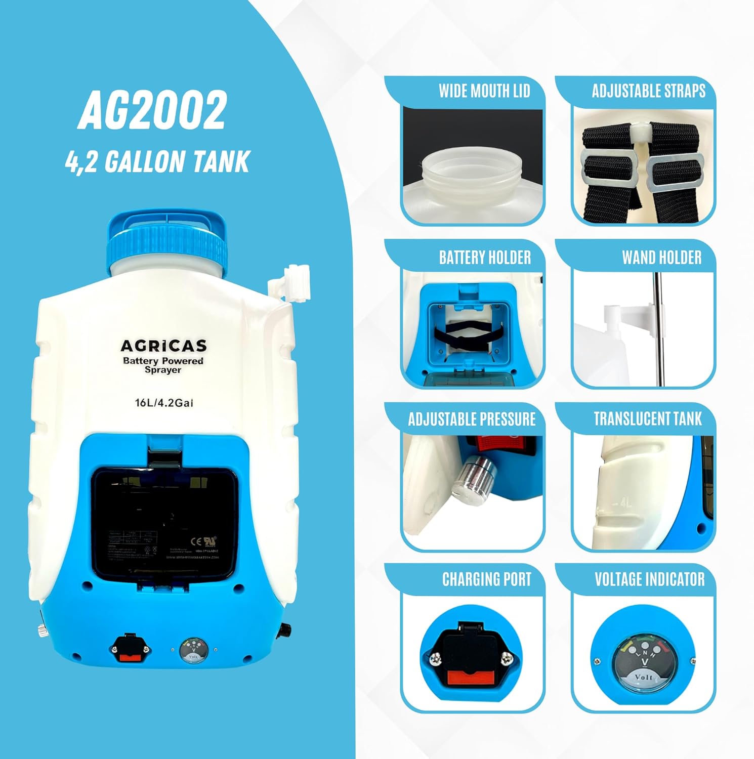- Multifunctional: The AGRICAS 4.2-gallon battery-powered backpack sprayer is a versatile tool that can handle a variety of tasks such as weed control, cleaning, and more. With its 7 nozzle options and 70 PSI cutoff pressure, this sprayer can handle any job you throw at it.