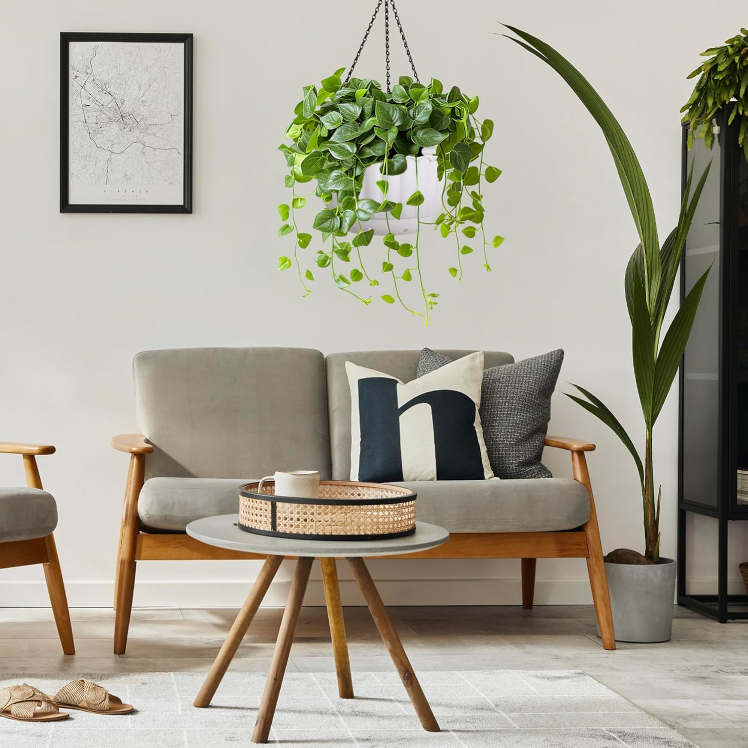 - Versatile Use: Enhance your space with versatility using indoor planter. Featuring removable detachable hanging chains, white hanging pots for plants indoor is perfect for outdoor areas like patios, gardens, and balconies, or indoor spaces such as kitchens, living rooms, dining rooms, bedrooms, and windowsills. outdoor planter for patio’s flat bottom also allows pots for outdoor plants to sit on desktops without chains.