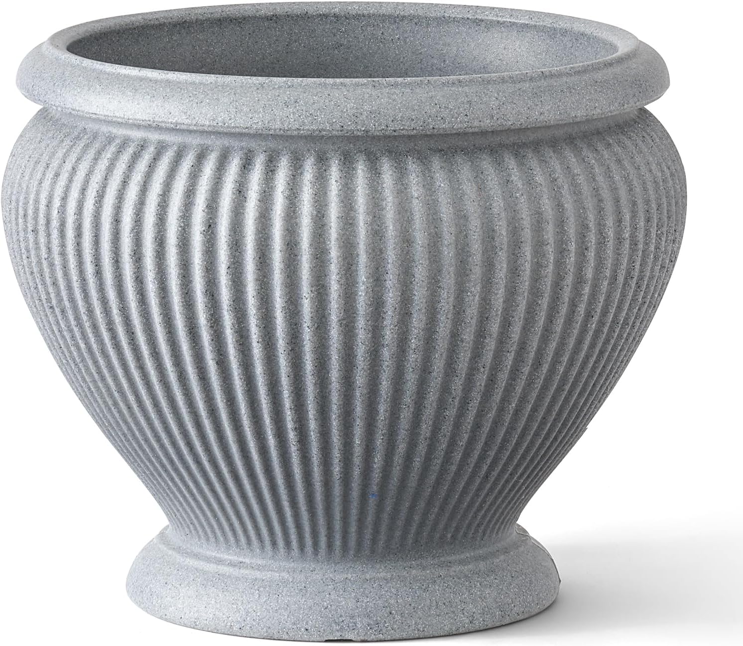 ARBORA 18" Cannes Urn Polyresin Indoor and Outdoor Planter with Stone Blend Concrete Gray Finish - Durable, Weatherproof, Lightweight, Large Plant Pot for Patio, Garden, Deck, Entryway