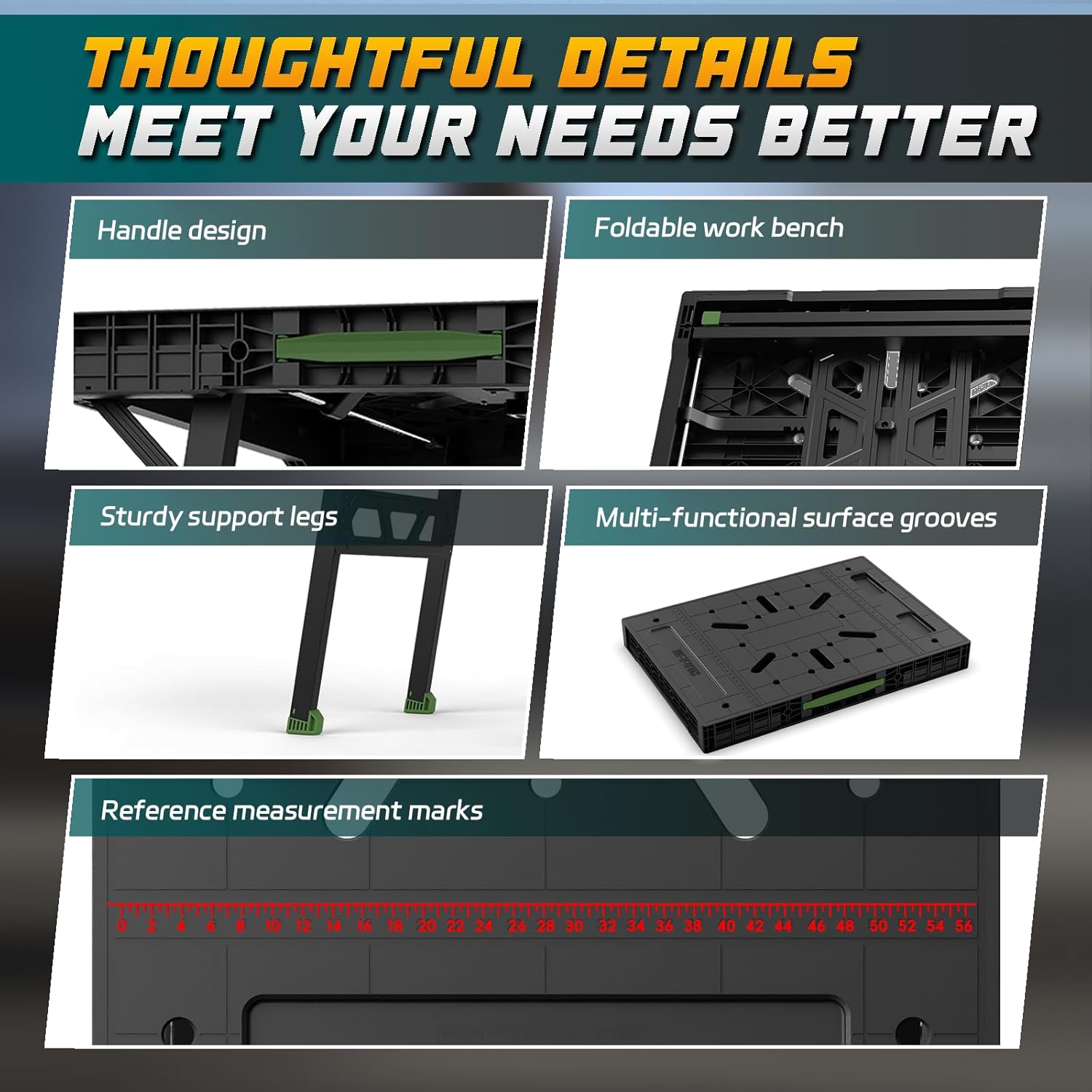 Foldable Work Bench,Easy Step Protable Work Table,34" W x 25" D x 31" H Lightweight Workbench wih 1650 LBS,Work Benches for Garage,Work Bench Suitable for Garage,Workshop and Home (Green)