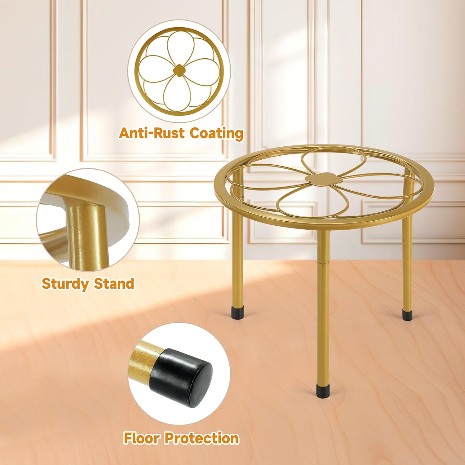 - 【Protecting the Floor】This flower stand surface of the pot stands is coated with an anti-rust finish, protecting against rust in humid conditions and wear from the natural environment. The metal stand have protective pads on the bottom to prevent floor scratches and wear