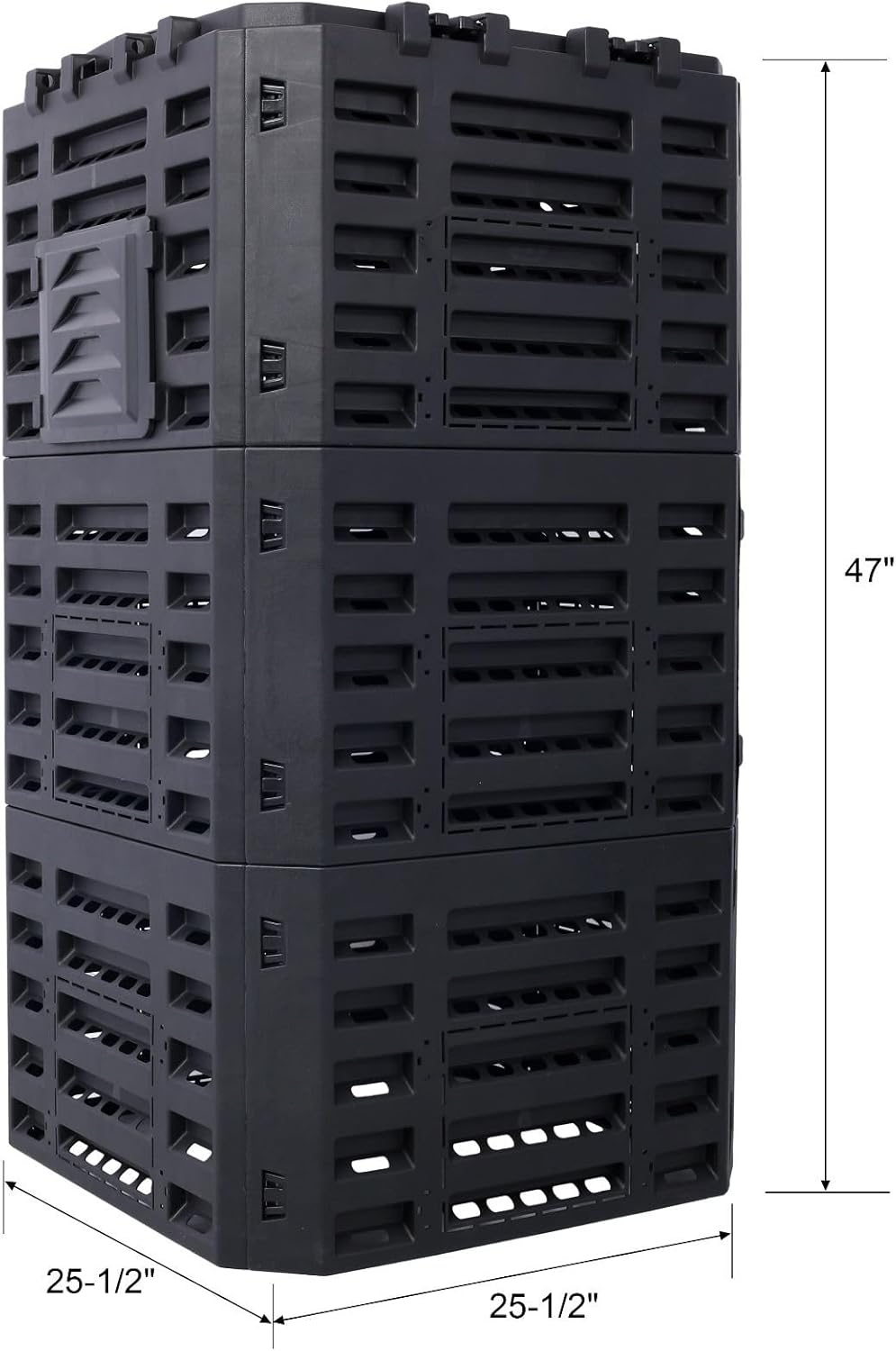 - Premium Recycled Plastic: Made from durable black PP plastic, this compost bin retains heat and regulates moisture, leading to faster decomposition and higher quality compost