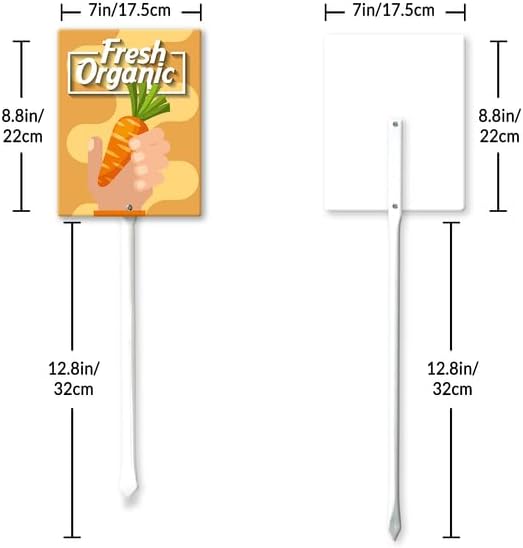 - [Extra large size] The plant tags total height 21.6", Width 7“ , Thickness is 0.07". The extra large size of the label makes the graphics are easy to read and attractive. Ther are thick, tall, and sturdy, and go into the ground easily