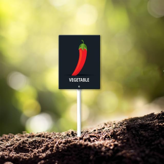 - [Extra large size] The plant tags total height 23.6", Width 8“ , Thickness is 0.07". The extra large size of the label makes the graphics are easy to read and attractive. Ther are thick, tall, and sturdy, and go into the ground easily