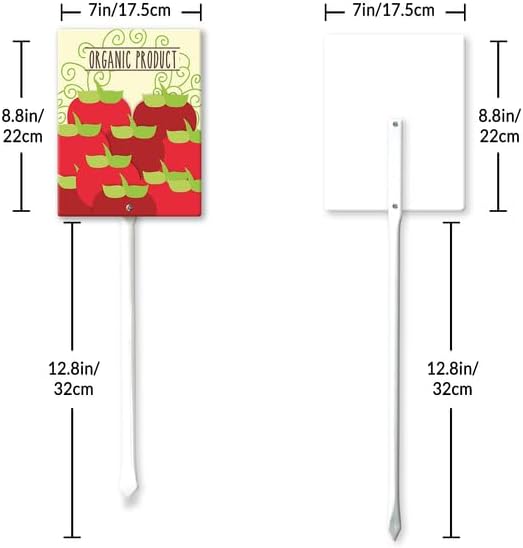 - [Extra large size] The plant tags total height 21.6", Width 7“ , Thickness is 0.07". The extra large size of the label makes the graphics are easy to read and attractive. Ther are thick, tall, and sturdy, and go into the ground easily