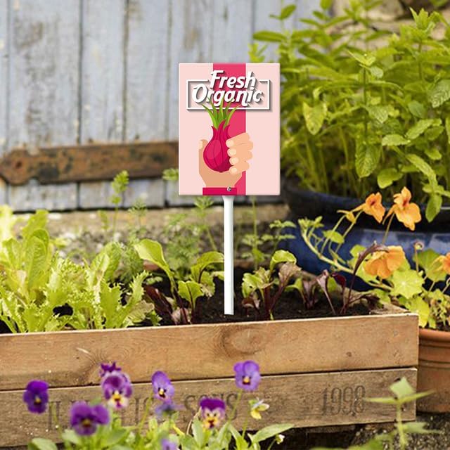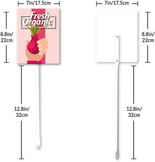 - [Extra large size] The plant tags total height 21.6", Width 7“ , Thickness is 0.07". The extra large size of the label makes the graphics are easy to read and attractive. Ther are thick, tall, and sturdy, and go into the ground easily