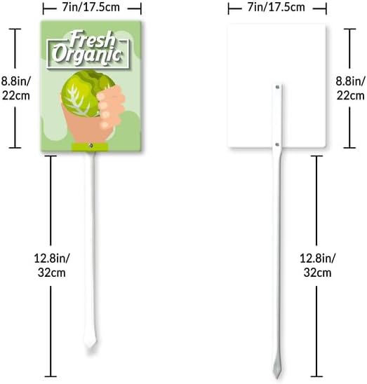 - [Extra large size] The plant tags total height 21.6", Width 7“ , Thickness is 0.07". The extra large size of the label makes the graphics are easy to read and attractive. Ther are thick, tall, and sturdy, and go into the ground easily