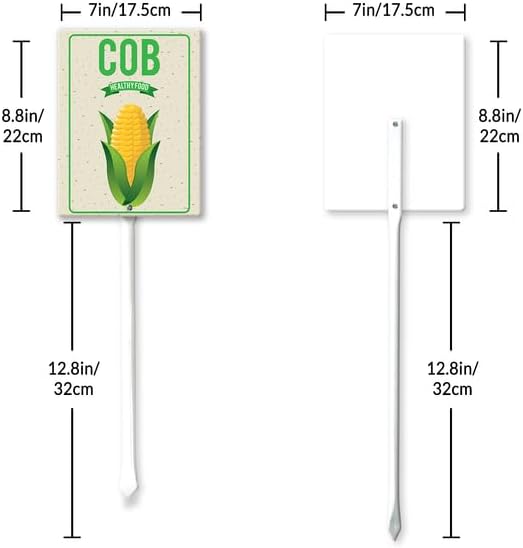 - [Extra large size] The plant tags total height 21.6", Width 7“ , Thickness is 0.07". The extra large size of the label makes the graphics are easy to read and attractive. Ther are thick, tall, and sturdy, and go into the ground easily