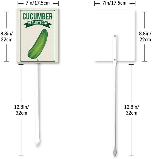 - [Extra large size] The plant tags total height 21.6", Width 7“ , Thickness is 0.07". The extra large size of the label makes the graphics are easy to read and attractive. Ther are thick, tall, and sturdy, and go into the ground easily
