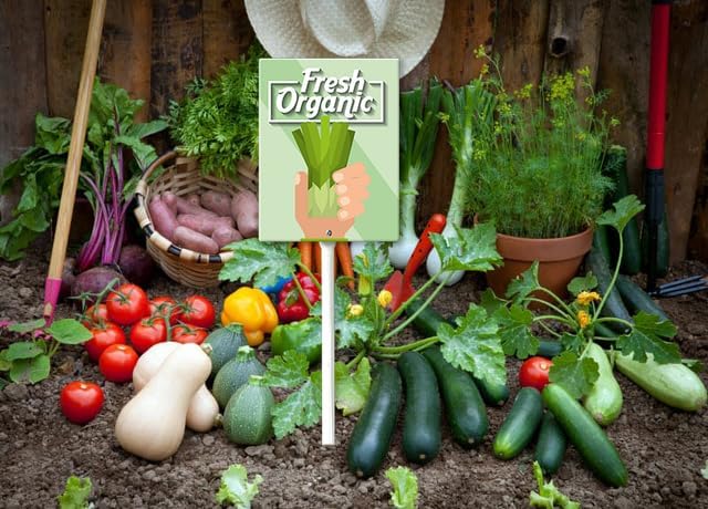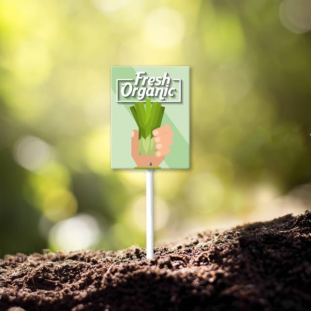 - [Extra large size] The plant tags total height 17.6", Width 4.6“ , Thickness is 0.07". The extra large size of the label makes the graphics are easy to read and attractive. Ther are thick, tall, and sturdy, and go into the ground easily