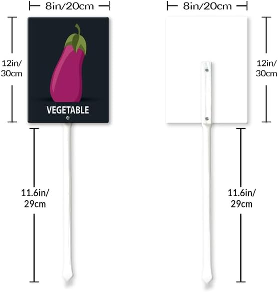 - [Extra large size] The plant tags total height 23.6", Width 8“ , Thickness is 0.07". The extra large size of the label makes the graphics are easy to read and attractive. Ther are thick, tall, and sturdy, and go into the ground easily