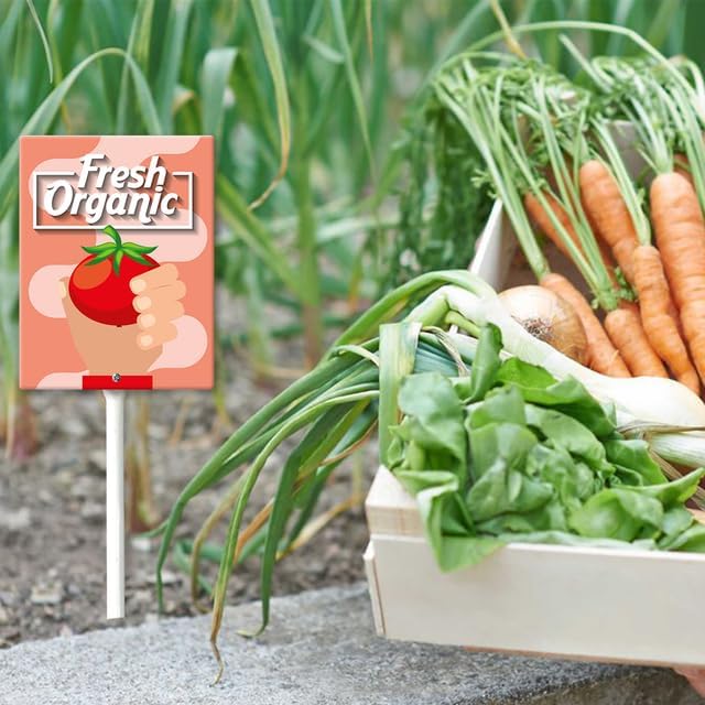 - [Extra large size] The plant tags total height 21.6", Width 7“ , Thickness is 0.07". The extra large size of the label makes the graphics are easy to read and attractive. Ther are thick, tall, and sturdy, and go into the ground easily