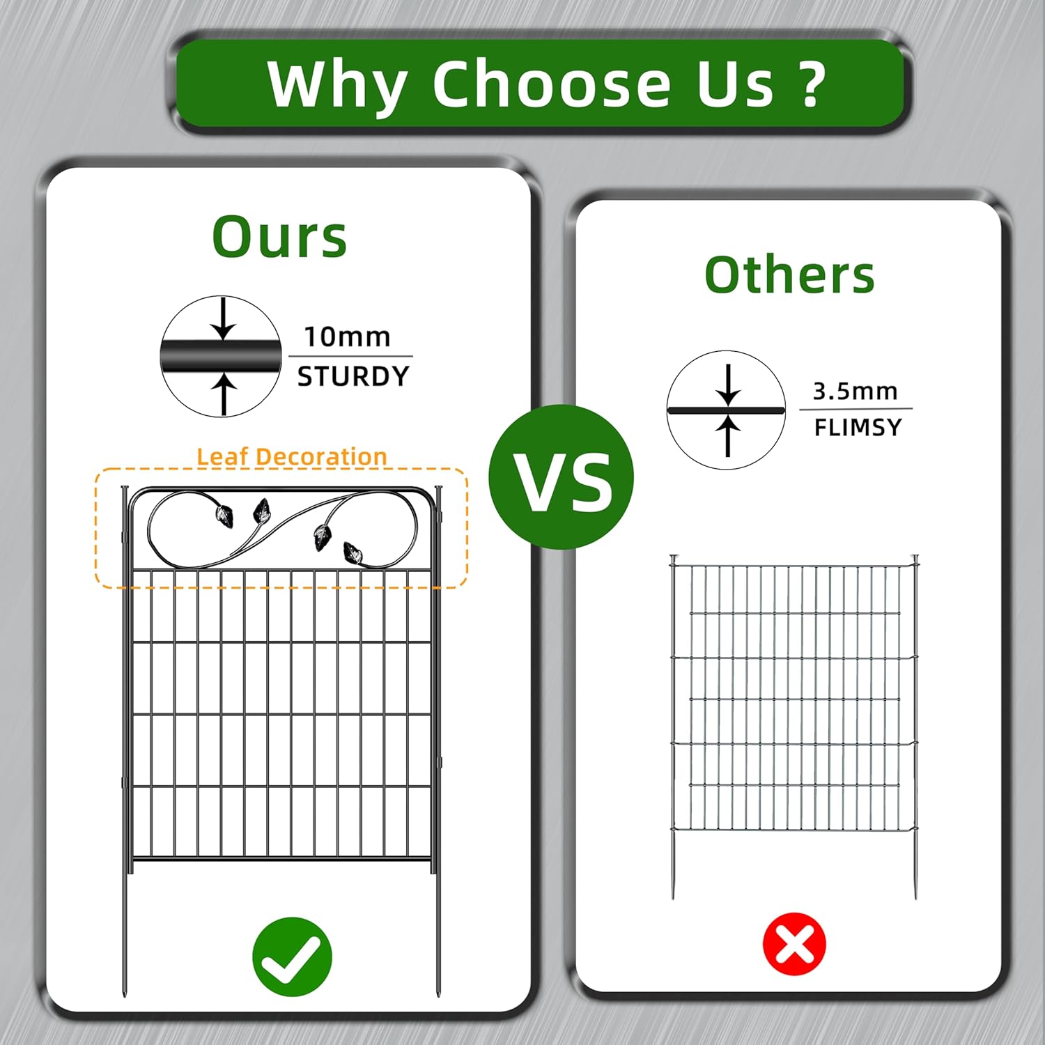 - DESIGN AND DECORATIVE: Unique design with leaves decoration on top of the panel fence. It will become the best decorative element in your garden, The flower border fence add new scenery to our garden. The edging fence can protect flowers and plants.